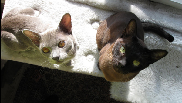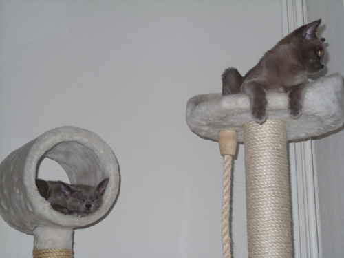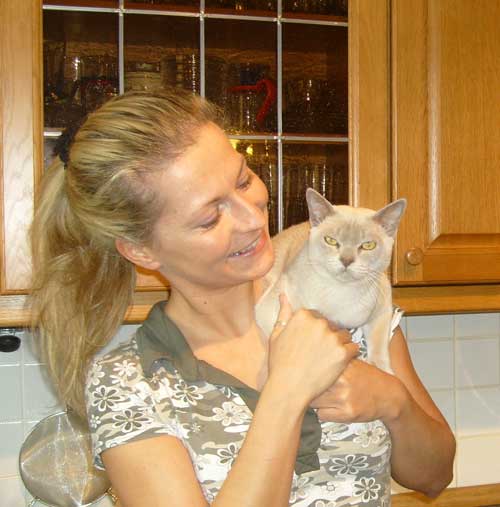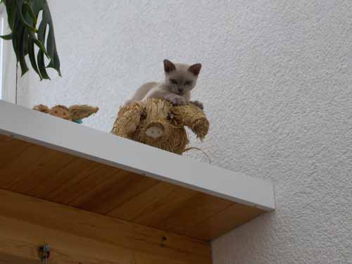 | Wir möchten an dieser Stelle den Familien, die unseren liebevoll aufgezogenen Kitten ein schönes Zuhause bieten, für die Fotos und die Informationen danken. Da wir uns wünschen, daß dieser Kontakt nicht verloren geht, hoffen wir ab und an auf Fotos zur weiteren Entwicklung "unserer" Burmesen ... |