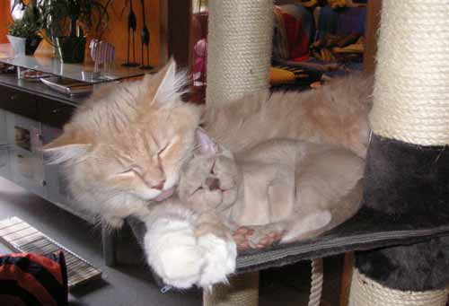 erreichten neue Fotos der beiden Jungs - sie sind nun ca. 1/2 Jahr alt. Gemütlich und nett tra la la la la - ist´s doch nur im Bett ... |